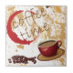 imagem de um copo de café, de uma mancha do anel de café e de uns feijões de café. O teste lê: Tempo do café.