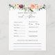 Cartão de conselhos e previsões de chás de fraldas com cascata de cor d'água de florais correspondente à coleção Time for Tea no Compro Adore Paper Co Zazzle. Uma maneira divertida de interagir com os convidados durante o seu chá de fraldas.