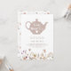 Um bule rosa com dentro de tipografia 'time for tea', junto com delicada aquarela pintada de flores silvestres ao longo do fundo. Perfeito para sua festa de chá de segundo aniversário!