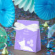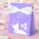 Bonito caixa de favores de brida pastel em tons de roxo apresentando um vestido estilizado de casamento e flores em fundo roxo. Um design personalizável para você personalizar com seu próprio texto, imagens e ideias.