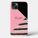 Monograma desta capas de iphone de triângulos geométricos listrados cor-de-rosa branco e preto. Disponível em todos os tamanhos de gabinete do iPhone e da Samsung.