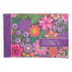 Um design floral ousado com tons coloridos de púrpura e pinos com um bloco de cores divertido para adicionar seu nome ou qualquer texto. O padrão das flores loucas tem uma variedade de cores. Você pode adicionar um nome, um monograma ou outro texto personalizado. Se você precisar mover a arte ao redor, clique no botão personalizar para fazer alterações.