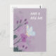 Uma carta roxa com flores e uma borboleta. Perfeito para primavera. Você pode mudar o texto.