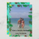 Tema tropical Cartão de Natal de praia apresenta tons de verde e amarelo e proclama, "Tenha um feriado de praia!". Cartão festivo e divertido.