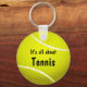 Uma bola gráfica de tênis num chaveiro. o chaveiro tem o texto personalizável "É tudo sobre Tênis".