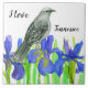 Um azulejo "I Love Tennessee" decorado com um sabiá numa cama de flores azuis reais da íris desenhadas com tinta e pintadas com aquarela. Inspirado pelo pássaro estadual e flor estadual do Tennessee. Você pode editar ou remover o texto para ajustado das suas necessidades.