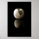 Fotografia em preto e branco, ligeiramente sépia tônica e texturizada, vida estática de maçã com folha seca e reflexão, sobre fundo preto. Clique no botão "Personalizar" se quiser modificar este impressão ou escolher um tamanho maior do que o mostrado - disponível até o tamanho Grande.