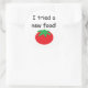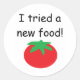 "Tentei uma nova Comida!" Os adesivos são excelentes de encorajar as crianças a experimentar novas comidas! As crianças vão vestir estes autocolantes com orgulho, já que têm um gosto de comidas novas e excitantes! Excelente para os pais darem depois das refeições ou nos restaurantes!
