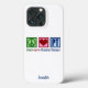 Essa capas de iphone fofa monograma do fisioterapeuta apresenta um bonito sinal de paz, coração, e as letras PT. Um belo presente de fisioterapia personalizada que lê Terapia Física do Amor pela Paz acima de um nome em azul.