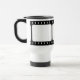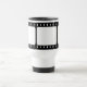 Envoltórios tradicionais preto e branco da tira do filme ao redor sem emenda neste design feito sob encomenda da caneca. Muitos agridem estilos e as cores estão disponíveis. É mostrada a caneca de viagem de aço inoxidável branca olhar legal.