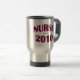 Em um lado desta caneca no texto curvado avermelhado-roxo corajoso lê: "ENFERMEIRA 2010". No meio deste texto no texto menor, customizável são as palavras "classe de". Dê a esta caneca um toque mais pessoal adicionando seu nome ou seu nome da escola ao lado oposto! Este design pode ser usado em algumas de um número canecas, vidros e de canecas de cerveja diferentes. Para todos os aqueles que trabalharam tão duro ser 2010 formandos da escola de cuidados.