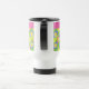 Uma caneca de viagem bonito do Não-derramar a personalizar, com um teste padrão das prímulas cor-de-rosa, amarelas e azuis, teamed com harmonização da banda cor-de-rosa onde você pode adicionar o texto se você deseja; parte da coleção das "prímulas finos & Painterly.