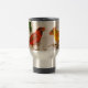 Canecas para a venda. Homem cardinal dos pássaros (vermelho) e fêmea (alaranjada) no carvalho. Canto do amor. Acrílico de pintura por mim - pássaros cardinais de Zina Stromberg conhecidos igualmente como: redbird, cardeal do norte, cardeal comum.