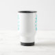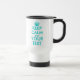 Mantenha-se Calmo Personalizado e a sua caneca de viagem de texto Faça o seu próprio mantenha-se calmo e continue parodioso. Design de tipografia Vintage Keepcalme. Cor azul-turquesa e branca. Modelo personalizável.
