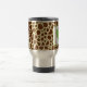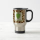 Uma caneca do professor que caracteriza uma ilustração de uma maçã verde dentro de um quadrado branco com guarnição verde. O fundo é impressão do girafa.
