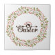 Coroa flórida fina e redonda com Felz pascoa de coelho branco. Modelo de azulejo de cerâmica personalizável