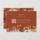 Terracotta Autumn QR Code RSVP Card. Responder ao seu dia especial é fácil com esta placa RSVP de código QR, com belas trabalho de arte de cor d'água pintadas à mão de folhas de laranja queimadas e terracotta, dálias creme e bege, e rosas de cobre e cor de ferrugem. O fundo de cobre quente melhora o design, enquanto o padrão de coordenação no verso adiciona um toque de na moda. Simplifique as respostas dos convidados sem sacrificar a elegância — personalize a sua agora.
