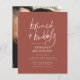 Chá de panela orçamentário e minimalista com letra de assinatura, tipografia elegante e fotografia personalizada. Escolhemos esta combinação boho terracotta e branca, pois é um dos nossos favoritos! Perfeito para primavera, verão ou eventos de outono. Correspondência com temas florais, botânicos, de países, celeiros ou boêmicos. Na parte superior do cartão, "brunch + bubble" é manuscrito à mão num estilo de letra de assinatura, com o nome da noiva em maiúsculas sans-serif. Um divisor de linha está separando-o do resto das informações do evento. Os detalhes da celebração estão em uma combinação de tendências de serif em minúsculas e maiúsculas. O local está em minúsculas. A parte traseira das placas apresenta uma foto de sangria de cheio da sua escolha. Em branco, "futuras mrs" está em caracteres de script estilo assinatura e o sobrenome está embaixo. Isso faz do convite uma bela guarnição para ser apresentado em geladeiras, mantas, estantes de livros, mesas de café ou conselhos de fotos! Edite facilmente o texto para ser exclusivo do seu evento. Mais variações de cor estão disponíveis em nossa loja, ou você pode escolher a sua para mostrar suas cores de casamento. Como parte da seleção orçamentária no Zazzle, esta folha não é um tamanho de convite padrão ou qualidade de papel. Se quiser que este design num cartão de convite o encontre na nossa loja ou utilize o Zazzle Make Machine para o transferir para o produto da sua escolha. Sinta-se à vontade para me mandar qualquer pergunta, ficarei feliz em ajudar!