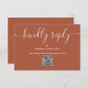 Um script de assinatura simples e elegante responde gentilmente à placa de RSVP de terracota com código QR. Projetado por Thisnotme©