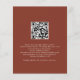 Um valor para o alternativo do ORÇAMENTO em tamanho menor de 4,5 x 5,6" de semirbrilho de 110 lbs, que é de espessura semelhante a um cartão postal (no entanto, não é adequado para uso como cartão postal). POR FAVOR, NOTE que existe UM por folha. Terracotta Florals Corpo de Código QR Casamento. As flores, bagas e gramíneas legantes, em cor de outono, terracotta marrom e creme, fluem do topo. O Casamento de está em um roteiro de estilo de escrita manual. Personalize facilmente o resto do texto para seus próprios detalhes. Adicione seu código QR ao seu site de casamento no verso faz com que esta seja uma opção conveniente para seus convidados para RSVP e veja todos os detalhes sem a necessidade de RSVP separado e cartões de detalhes. Seu código QR será gerado automaticamente para atualizar o código de amostra no design, quando você simplesmente alterar o URL de amostra no modelo com o URL do seu próprio site de casamento.