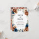 Elegante azul-Marinho, Terracotta, casamento do tema floral da Terra Laranja, salvar o cartão com buquê elegante de azul-Marinho, rosas de cor Terracotta e folhas verdes de eucalipto. Entre em contato comigo para obter ajuda sobre a personalização ou se você precisar de outro produto com este design.