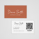 Faça uma impressão duradoura com um cartão de visita de negócios moderno e versátil. Este modelo de dois lados, totalmente editável, ostenta uma design minimalista impressionante. Um fundo terracotta sólido define o palco do seu nome ou nome de empresa em tipografia de script elegante. A cor de fundo é completamente personalizável para se adequar à sua marca. No verso, incorpore facilmente todos os seus detalhes essenciais de contato, juntamente com um código de QR prático, juntamente com o identificador de mídia social. Projetado para impacto e simplicidade, esse modelo é perfeito para qualquer tipo de negócio ou profissão. Quer você esteja trabalhando como agente imobiliário, embelezador, designer, planejador, artista, profissional corporativo ou em qualquer profissão, modifique sem problemas as cores, o texto e o logotipo para criar uma representação profissional e distinta de você ou de sua empresa.