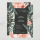 Terracotta sava convite para o casamento de folhagem verde e folha tropical. Parte de uma fantástica suíte de casamento elegante. Coleção tropical verde moderno, azul e ferrugem.
