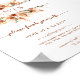 Adicione um pouco de elegância ao seu casamento com a nossa poster do Terracotta Wedding Gents Bathroom. Este na moda apresenta um design preto-e-branco minimalista que se ajustado perfeitamente em qualquer tema de casamento. É perfeito para dirigir suas hóspedes para uma cesta de hospitalidade cuidadosamente preparada no banheiro, garantindo que elas se sentem mimadas e bem cuidadas. Criado com uma mistura de estética moderna e encanto rústico, este sinal de pedestal é funcional e decorativo, fazer que deve ter para seu dia especial. Ideal para uso como mesa ou arte de parede, este sinal se enquadra nas categorias de Artesanatos e suprimentos de partidos, sinais de casamento e casa e vida. Seu sofisticado design e sotaques brilhantes irão melhorar a harmonia do seu casamento, criando uma experiência memorável para seus convidados.
