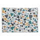 Um design de estilo terrazzo com formas aleatórias em vários tamanhos e cores.