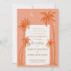 Esta design de boho faz parte de uma coleção que apresenta palmeiras laranja contra um céu noturno estrelado com a lua e as estrelas. Isso seria perfeito para qualquer um que queira um convite ao estilo boho para um casamento de praia ou destino ou uma vibe de Primaveras de Palm de Verão.
