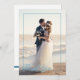 Tesouros da orla, cartão plano de casamento na praia agradecimento. Moldura quadrada elegante com estrela-do-mar e dólar de areia acentuados em azul oceano.