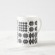 Uma caneca de café chique de China de osso, com um teste padrão de motivos tradicionais da tapeçaria de Galês no preto em um fundo branco. Este teste padrão caberá todos os tamanhos da caneca.