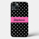Teste padrão de bolinhas preto e branco. As bolinhas brancas no preto e no meio lá são uma banda do rosa quente onde você possa adicionar seu nome.
