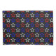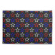 Características deste design patrióticas um teste padrão de estrelas vermelhas, brancas, e azuis em um fundo preto.