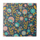 Características deste design da arte popular um teste padrão floral do rosa, da laranja e da cerceta em um fundo azul escuro.