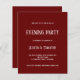 Texto Branco do Orçamento Convite de festas da Noite de Borgonha. 100% personalizável. Um design tipográfico moderno em um cartão de ponto-e-vírgula de preço de 4,5 x 5,6 pol (semelhante à espessura de um cartão postal) menor para convidar seus convidados noturnos para o seu casamento. As cores podem ser alteradas se necessário por meio de personalização adicional.