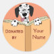 Estas etiquetas customizáveis têm uma imagem de um cão Dalmatian dos desenhos animados que guardara um livro.