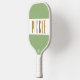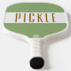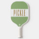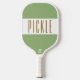 Este design desportivo divertido apresenta uma larga faixa horizontal branca com tipografia de texto PICKLE, alta e marrom, que pode ser personalizada. As faixas largas superior e inferior são verdes retrorreflectores claros.