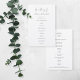 Tamanho de 5,5" x 8,5" a um preço orçamentário, em uma elegante estoque LINEN de 110 lb - para um sentimento de luxo pelo valor do excelente, isso é perfeito para programas, convites e menus, etc. Este alternativo de tamanho de orçamento também está disponível em outras opções de papel. O estoque do cartão SEMI-GLOSS de 110 lb tem aproximadamente a mesma espessura do cartão postal, portanto também funciona bem para convites. O papel FELT de 100 lbs é colorido por buff, NÃO branco, então adiciona um toque rústico. O estoque de papel MATTE de 80 lb é branco brilhante, para impressão nítida, excelente para seus menus e programas, enquanto o papel SATIN de 80 lb é fino e leve, ideal para gabinetes. NOTE QUE OS ENVELOPES OPCIONAIS SÃO UM POUCO MAIORES EM TAMANHO A 6,75" x 9" aprox. Um elegante design tipográfico em preto e branco para seus programas de casamento. O cabeçalho principal está em um script na moda set e o resto do texto que você pode personalizar facilmente. Você pode alterar as cores do texto e do plano de fundo se quiser combinar o tema da cor do casamento através da opção Personalizar Mais, assim como de outras opções que você precisar. Se precisar de assistência para a edição deste design, por favor, envie-me uma mensagem.