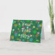 Um design divertido, festivo, retrô inspirado por luzes de fada coloridas do arco-íris em uma árvore de natal. Um cartão de saudações com um design verde, azul, rosa, laranja amarelo e verde personalizável para você personalizar com seu próprio texto, fotos e ideias. Criado usando técnicas digitais por jess perry.