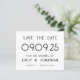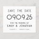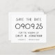 Um alternativo de baixo preço de 4,5 x 5,6" em 110 lb é semelhante em espessura a um cartão postal. Há um por folha. Texto Grande do Orçamento Casamento Branco Negro Salve a Data. elegância clássica com este design de tipografia de na moda totalmente personalizável. Personalize facilmente o texto e, se você tiver um site de casamento, gere automaticamente um código QR para ele no verso substituindo o URL de amostra para o URL do seu site de casamento. Você pode excluir o código QR de amostra se não for necessário por meio da opção editar mais, onde você também pode editar cores de texto e estilos e cores de fundo em cada lado, se desejar.