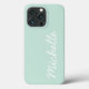 Personalize este caso Casemate com seu nome, iniciais ou outro texto (opcional). Capa de telefone protetora verde azulada com nome cursivo branco, monograma ou outro texto personalizado. As cores de fundo e texto são personalizáveis! Opções: Case-Mate Mal Há Case-Mate Duro _______________ Cottagecore inspirado