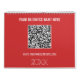 Cores e fontes personalizadas - Calendários com seu código QR Digitalização Informações Texto personalizado Cores de texto personalizadas Promocional comercial ou Presente de calendário moderno pessoal - Adicionar seu código QR - Imagem ou logotipo - foto / texto - Empresa - Nome ou outras informações / mensagem - Redimensionar e mover ou remover / adicionar elementos - Imagem / Texto com a Ferramenta de Personalização. Escolha / Adicione seu plano de fundo e cores de texto / fonte / tamanho favoritos! Por favor, veja meus outros projetos/designs. Você também pode transferir esses designs para mais de 1000 produtos Zazzle. Boa Sorte - Seja Feliz :)