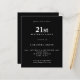 Texto Simples do Orçamento Convite para aniversário de 21 anos Preto. Um valor para o alternativo menor de 4,5 x 5,6 polegadas é usado como padrão para a opção de semigloscópio, que é recomendada para convites e é de espessura semelhante a um cartão postal. A opção satin é muito mais fina para os gabinetes.