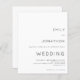 Um valor para o alternativo do ORÇAMENTO em tamanho menor de 4,5 x 5,6" de semirbrilho de 110 lbs, que é de espessura semelhante a um cartão postal (no entanto, não é adequado para uso como cartão postal). POR FAVOR, OBSERVE QUE HÁ UM convite por folha. Simples Texto Convite para Casamento Branco Preto.Este design mínimo tem uma simples tipografia preta que você pode personalizar facilmente em um fundo branco. Você também pode alterar o texto e as cores de fundo em cada lado para combinar o tema do casamento, se desejar por meio de Personalizar mais. Se precisar de ajuda com isso, por favor, me envie uma mensagem.