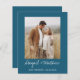 Orçamento Personalize este Teal Escuro e uma Foto Branca Simples e Elegante De Dois Lados Salve o Convite de Data com sua mensagem e detalhes. Este convite chic inclui a tipografia de escrita manuscrita na moda moderna e elegante para a celebração do Casamento Especial a Ser.