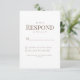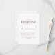 Cartão de Resposta de RSVP de Casamento Branco. Jantar e Dança. Fonte Moderna. Fonte Combinada. Texto Dourado.