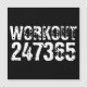Texto vestido e arranhado Workout 247365 em cor branca com fundo preto. Perfeito para qualquer pessoa que esteja levantando, malhação, treinando, construindo carrocerias e indo para a academia.