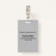 Texto simples design crachá com foto de funcionário que você pode personalizar para você e seus funcionários. As cores e formas de design são textos pretos em fundo de cinza e forma retangular de formato de retrato. Para personalizar este crachá, digite seu nome de empresa ou empresa, endereço, número de telefone, nome do funcionário, título do funcionário, número de ID do funcionário e foto do funcionário de upload. Após digitar textos e carregar fotos, verifique a aparência nos lados frontal e traseiro. Se a aparência lhe agrada, você pode colocar seu pedido agora. Se você precisar redimensionar e mover os textos e a foto para o ajustado neste crachá, troque a ferramenta design. Você também pode fazer outras alterações na ferramenta design de acordo com a aparência que você prefere, como alterar a cor do plano de fundo, a cor da fonte e o estilo da fonte.