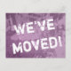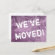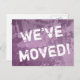 A textura afligida parece cartões postais em movimento. Texto de movimentação personalizado; nós movemos! Adicione seu novo endereço no verso. Cartões engraçados modernos para a nova casa ou localização de negócios.